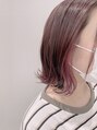 インナーカラーはカシスピンクで表面はレッドブラウンで全体的に暖色カラーにしています!パッと見てインパクトが欲しい方にはおススメカラーになります。カットは切りっぱなしボブでインナーカラーと相性抜群です!