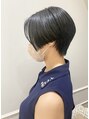 刈り上げない前下がりのハンサムショート。モード感のあるかっこよく大人っぽいショート。後頭部は丸みを残した絶妙バランスです!カラーはブルーブラックでよりカッコいいイメージに☆