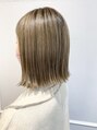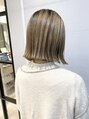 シャドールーツカラーの外ハネボブです。全体をブリーチし上からグラデーションがける様にオンカラーをする事で全体のブリーチでも自然に伸びてきたリタッチも気になりにくくなります!