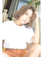 透明感のあるアッシュベージュの髪色に毛先がランダムに動く柔らかパーマで大人の抜け感と洒落感たっぷりのスタイルです♪耳かけでお気に入りのピアスをつけてハッさピーな休日に♪