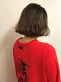 あご下ラインでパッツンボブにカットしたベースは、ダブルカラーを施して、ワンレンのボブでも優しい印象に仕上がります。