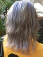 ダブルカラーで仕上げるアイスコールドブルー。ホワイトベースまでブリーチしたら、トリートメント配合のブルーバターをカラーリングして決めるカラー。