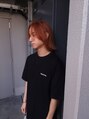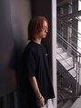 切りっぱなしの長めのボブヘアーベース。顔まわりにレイヤーを入れて抜け感を!ハイトーンのオレンジを入れて遊びを!