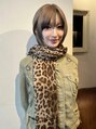 伸ばし途中のボブにレイヤーをたっぷり入れたスタイル。ベージュカラーに顔周りにローライトをいれ、陰影で引き締めることでエッジの効いた印象に