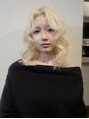 ホワイトベージュカラー。バージン毛から2回ブリーチ+カラー。ほんのりピンクでgirlyさとくびれるボブカットでフェミニンな印象に