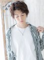 【スタイルは★ブックマーク★が便利】くせ毛風パーマでやわらかソフトな雰囲気に仕上げたアシンメトリーショート。ワイルドアップバングでぐっと男らしくセクシーに。多毛の方はツーブロックや刈り上げで毛量調整がGOOD。