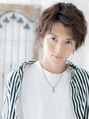 【スタイルは★ブックマーク★が便利】くせ毛風パーマでやわらかソフトな雰囲気に仕上げたアシンメトリーショート。ワイルドアップバングでぐっと男らしくセクシーに。多毛の方はツーブロックや刈り上げで毛量調整がGOOD。