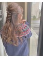 ゆるく三つ編みをしたハーフアップ。前髪をクリンっと巻いてナチュラル可愛いアレンジです。