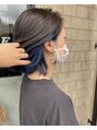 ベースは暗めのグレーでインナーをブルーにしました。夏のブリーチスタイルとても人気です!