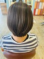 セットをしなくてもまとまりやすく表面は動きが出るようにカットしました!極細のハイライトを入れて白髪をぼかしてあります。白髪が伸びて来たときにハイライトの部分も色が落ちてきて目立ちにくくなります!