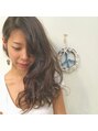 襟足と顔まわりに自然なハイライト、表面には寒色系のローライトをプラスして重めのロングヘアに動きを出しました。2015s/sのファッションのテーマ「70`s」「フリンジ」「ロックフェスガール」「サイケデリックな大柄なフォークロア」に合わせたカラーです。