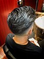 フェードの王道とも呼べるハードパートスタイルで7:3の7の部分をあえて長く残し後ろに流してます!直毛の方ならではのハチの悩みを長くしてジェルで撫で付けるセットにより解消してます!フェードや短髪にしたいけど短いのが不安な方にオススメな髪型です!