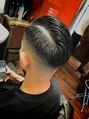 写真では後ろに流してスリックバックにしていますが右側はツーブロックフェードなので、流さず垂らすことで雰囲気を変えれる2wayスタイルです!ハードパートでかかせないラインも分けやすくするため生え癖に合わせていれてます。