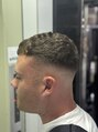 サイドからバックにかけて肌が透けるほどのスキンフェードを入れ、トップは自然なクセを活かして短く整えたスタイル。清潔感がありつつラフさも残る、バランスの良いミリタリー系ショートです。