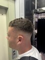 サイドからバックにかけて肌が透けるほどのスキンフェードを入れ、トップは自然なクセを活かして短く整えたスタイル。清潔感がありつつラフさも残る、バランスの良いミリタリー系ショートです。