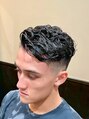 サイドをタイトに締め、トップを後ろへ流す大人パーマ。濡れ質感で束感が際立ち、色気と男らしさが両立。ジェルを馴染ませるだけで簡単に決まります。