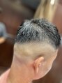 サイドから襟足にかけては低めにスキンフェードで締め、トップは短く残して清潔感を重視。骨格に合わせたグラデーションで、横顔もシャープに見える男らしいベリーショート。