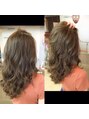 お客様スタイル、グレージュカラーです!極細のハイライトが入ってるので、巻いた時、髪がなびいた時に立体感が出ます!