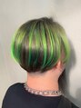 ビリーアイリッシュの様なグリーンのデザインカラーをした2ブロックスタイル//抜け感ヘア.ショートヘア.ショートカット.ベリーショート.マッシュショート.デザインカラー.フリンジカラー.インナーカラー.ハイライト.ケアブリーチ.