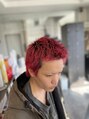 パキッとした赤に、斜めにモノトーンのデザインを入れさせてもらいました!誰とも被らない髪型を目指している方、是非ご相談ください!