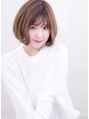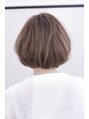 大人可愛いボブ。グラデーションカラーで伸びても自然にメルトカラー。チークバング,うぶバング,リップバングも小顔に似合わせカット,パーマはエアウェーブ、デジタルパーマで再現性の高いカール感。ほつれウェーブ,無造作ウェーブ,耳かけ,簡単スタイリング