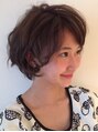 首が半分くらい見える長さにカットする事で首が細く長くキレイに見えるショートです♪それに合わせて前上がりにカットしゆるふわのパーマをかけてエアリー感を出しました☆トップにボリュームのある小顔ヘア♪