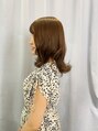 ベージュカラーで可愛いく、目に入らないくらいの長さで目力アップする前髪と顔周りから全体にレイヤーカットをすることでくびれヘアで女性らしいシルエットにしてみました。
