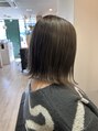 元々ブリーチ毛なので、グレー系の色味を塗布しました。イルミナカラー独特の発色がよく、ブリーチの黄色味を和らげられる様に。カットは肩くらいで外ハネが映える長さに。