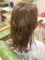切りっぱなしの重めラインに外ハネを入れたスタイル!表面は軽めにしてふわくしゃで巻いてあげると可愛いです^ ^色はくすみ系で透明感は残してあります!!!
