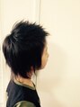 トップを短くしたレイヤースタイル。サイドはアシンメトリーに、ネープは長さを変えずにすいて、トップにボリュームと動きを出したスタイルです。