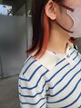 インナー部分をブリーチしてブラッドオレンジをオンカラーしました。表面も暗めで色味いれて中の色が際立つように♪