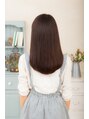 表面にセニングをいれ、全体に重さを残しつつ顔周りにレイヤーを追加し小顔にみえる効果もあるナチュラルストレート♪