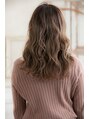 胸上のローレイヤーに、内・外ミックスのパーマを。頬を包み込むようにかけるので輪郭もカバーしてくれる。カラーはマロンベージュで、ツヤ感と柔らかさも同時に演出