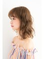 ひし形レイヤーベースのミディ。トップにレイヤーを入れて大きめのロッドで顔を包み込むように動きをつける。カラーはハニーベージュで可愛く。