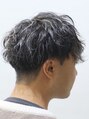 ツーブロックを入れたマッシュに波巻きスパイラルパーマをプラス。ふんわりと大きめのウェーブをつけることで抜け感と色気を演出します。パーマのおかげでスタイリングもワックスを少量馴染ませるだけで決まります!