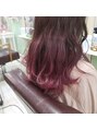 毛先の高彩度のラズベリーカラーがかわいいグラデーションカラーはいかがですか♪ブリーチはしたくない方でもチャレンジしやすいカラーです。