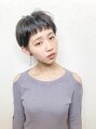 束感のあるショートバングが可愛いショートヘア。耳周りと襟足はスッキリと、トップに長さを残すことで女性らしい丸みのあるデザインに。