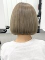 1_カットはワンレンボブベース 2_頭のフォルムを重視し 3_重めな毛先は内巻きに仕上げ 4_カラーはケアブリーチを使ったダブルカラーでほんのりピンクグレージュに //メニューはダブルカラー【ケアブリーチ&カラー】 23400~