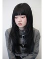 1_カットはロングレイヤーウルフ2_頭のフォルムを重視しながら前髪をつくり 3_ブラントカットした毛先 #ブルーブラック#髪質改善#インナーカラー#ダブルカラー#小顔#ウルフ#くびれヘア#イルミナカラー#イヤリングカラー#ぱっつん前髪