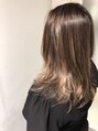 リアル外国人風カラー。根元は、暗めのトーンにバレイヤージュ、ハイライトを入れて。上からかぶせる色は、透明感のある色をチョイスミネコラ髪質改善