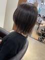 切りっぱなしのスタイルで伸ばしてもいいし切ってもいい間に楽しめるかわいいスタイルです。外ハネにゆるくアレンジでおしゃれを。