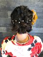 ゆるふわまとめ髪です。髪飾りを変えれば結婚式や二次会パティ―などにも合います。ラメをつけてキラキラ華やかにしました。