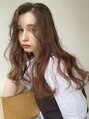しっかり立ち上げたバングが今っぽいロングヘア。リップラインでカットして、流れやすくレイヤーを入れると扱いやすいです。全体も艶が出るように重めベースに、コロンとしたパーマをかけています。パサついて見えない暖色系カラーがおすすめです。