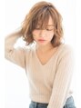 無造作ブルーズなふわもこカールは今どきの抜け感テイストたっぷりで今季活躍しそうなゆるニットとの相性◎! 平牧でパーマを作って細かいハイライトをブレンドしたハニーベージュで立体感♪