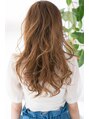 胸下のワンレンベースに表面だけレイヤーを入れて 巻いた時に動きが出やすいように。 毛先~中間にはスライドカットで束間を。 カラーはベージュ系をのせて柔らかさを出した。