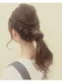ポニーテールにひと工夫加えて可愛く☆位置は下目のネオポニーテールです。骨格と身長に合わせてポニーテールの位置を変えることで、後ろ姿が一番素敵に見えるようにしています。アレンジもひと工夫で印象が変わりますよ!