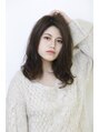 セミロングのパーマスタイルです。頬骨の高さからのウェーブは強すぎず、ラフにスタイリングするのがポイントです。