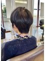 頭の形が綺麗に見えるように後頭部の丸いフォルムにこだわり、めりはりがつくように首元はしっかり短くしめて作っています。イノアカラーを使用しました。しっかりと白髪も染まって、手触りも良く、つやっつやに仕上がります^^