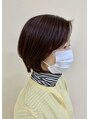 後ろのトップを少し短めに切り、丸みのあるフォルムにしています。ネープはしめてすっきりとした大人のボブスタイルです。