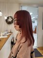 顔周りが ポイントの姫カットでちょっと個性的に!レッドチェリーカラーとインナーのペールパープルでメリハリカラー!